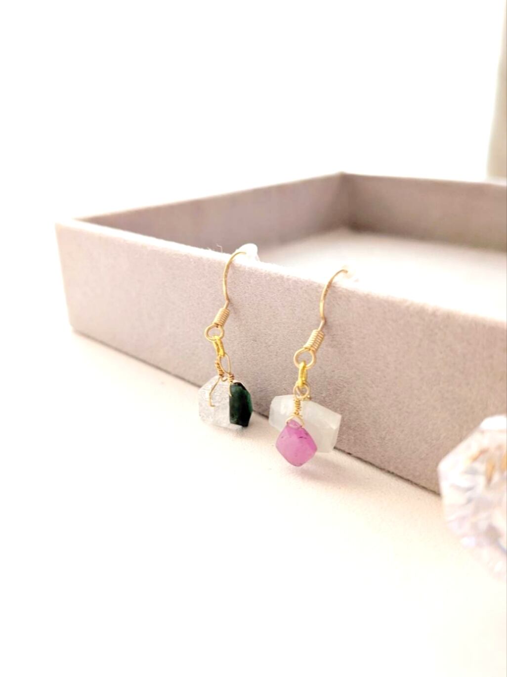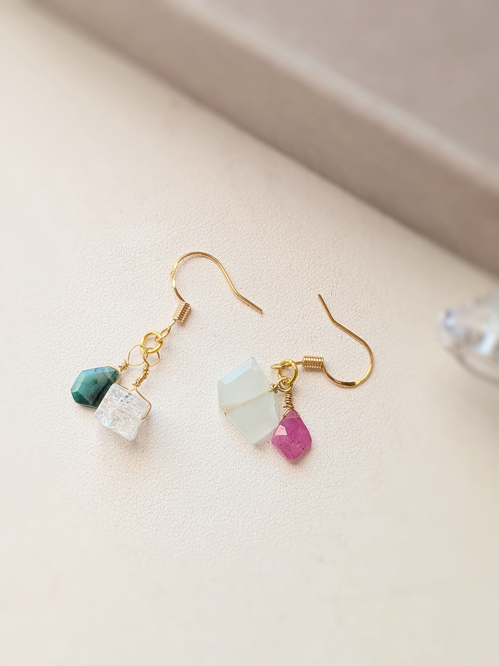 自分へのご褒美や大切な人への贈り物にぴったりな「揺れるオリジナル宝石粒ピアス」です。ナチュラルな天然石を使用し、耳元で優雅に揺れるデザインは、どんなスタイルにも華を添えます。シンプルながらも個性的な印象を与える本アイテムは、日常使いから特別なシーンまで幅広く活躍します。