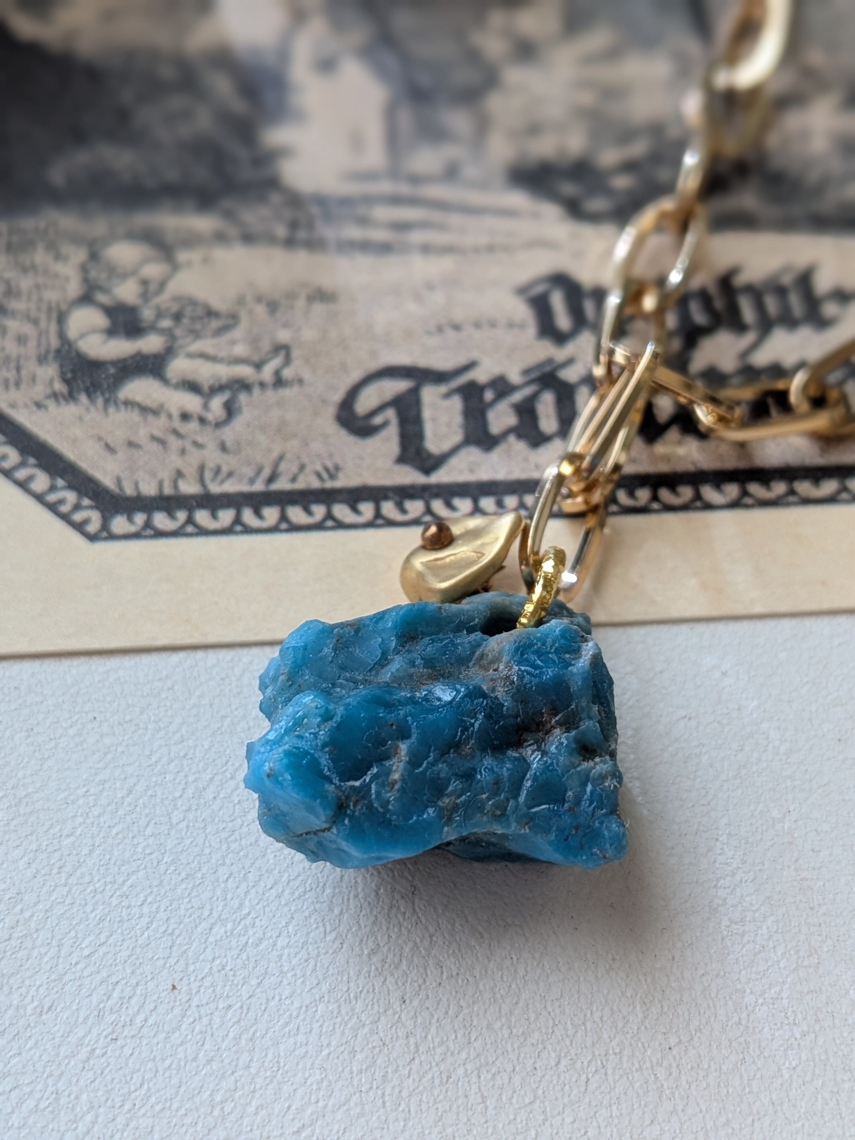 送料無料◆鉱物ネックレスーアパタイト ラフロック ネックレス 一粒