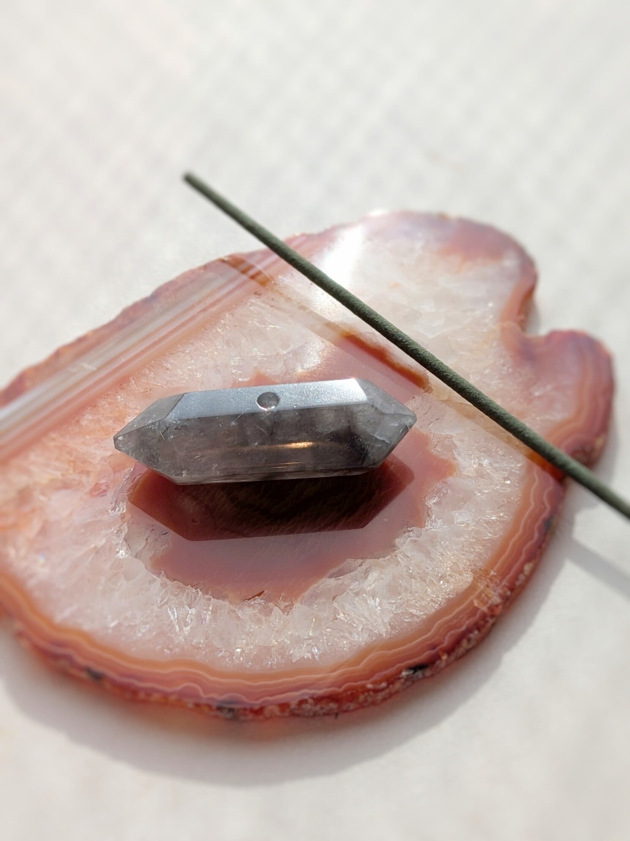 ○この黒水晶お香立ては、手作りならではの温かみを感じられるアイテムです。丁寧に仕上げられた一品で、各個体により異なる魅力があります。お香を立てる際は、香りを楽しむだけでなく、目で見ても心が和むひと時を提供することでしょう。