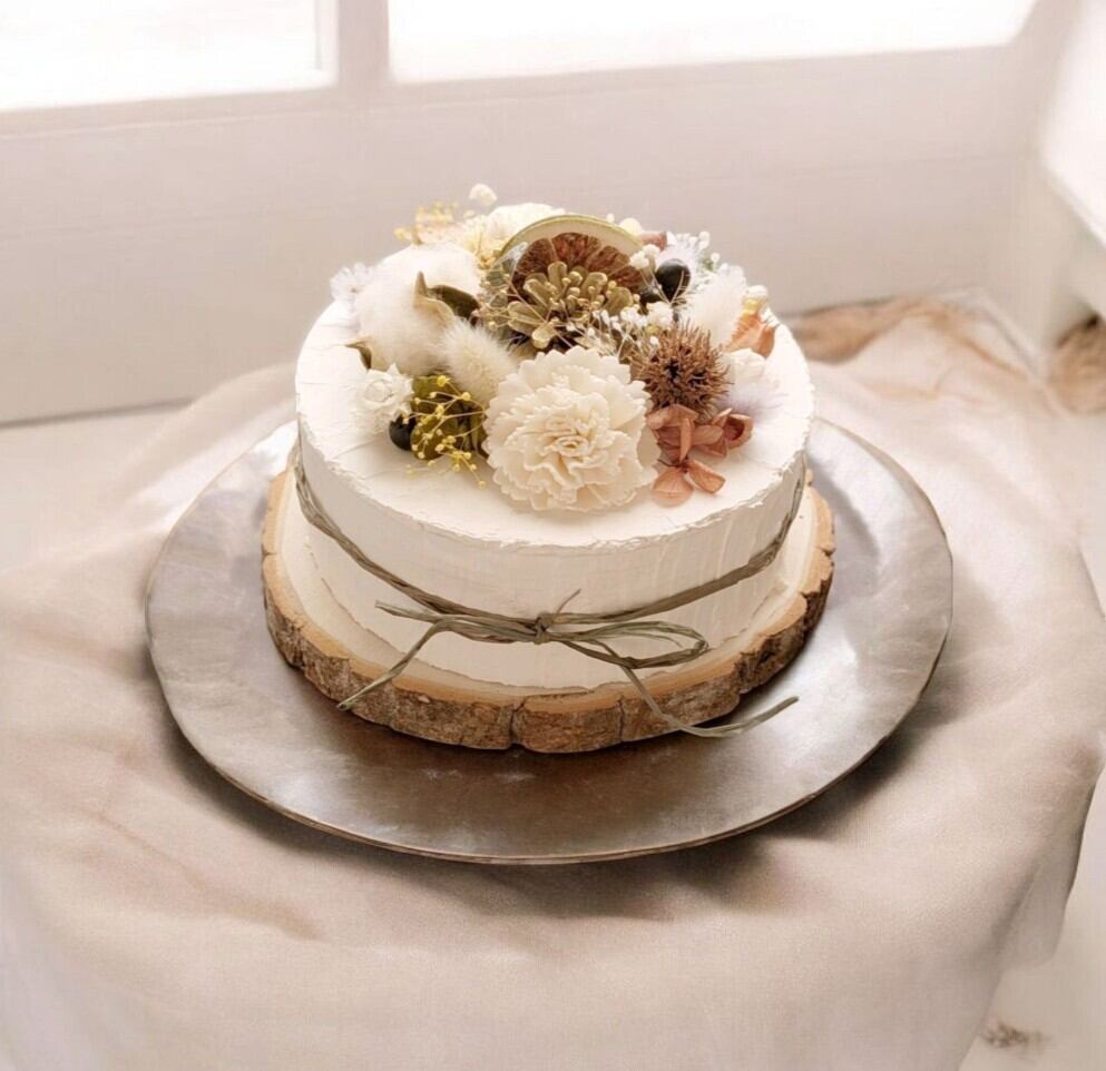 秋の味覚をテーマにしたこのフェイクケーキは、あなたの特別な日を一層引き立て、思い出を美しく残すお手伝いをします。ドライフラワーで華やかにデコレーションされているため、お部屋に飾るだけで一気に秋の雰囲気を感じることができます!