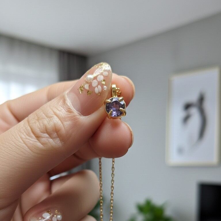 送料無料◆カラーチェンジ宝石1粒 ーナノシタル ネックレス シンプル
