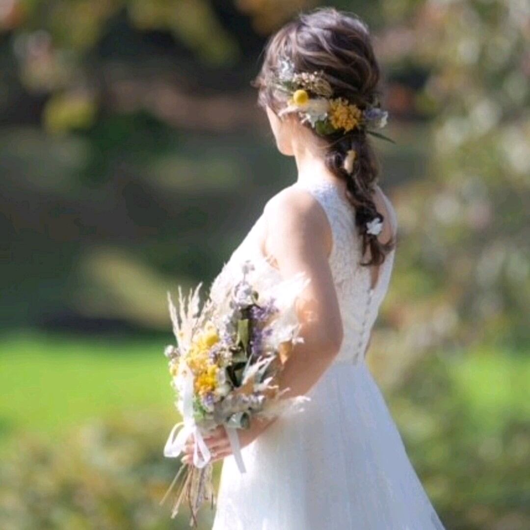 祝福の光を束ねたイエローガーデンブーケ|55cmナチュラルクラッチ