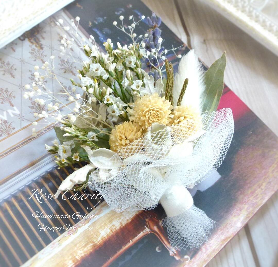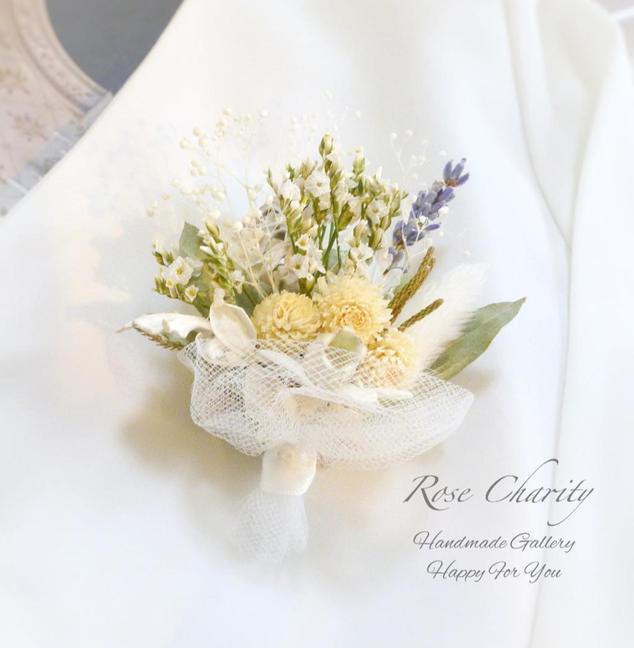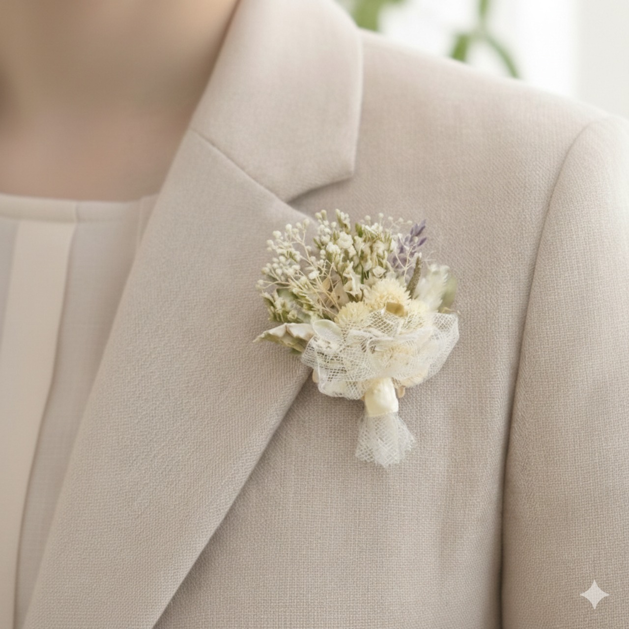 淡色ブーケコサージュ ホワイト × グリーン ― 入学式・卒業式に ―