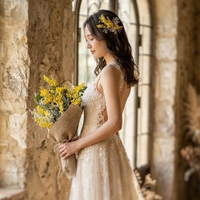 《受注製作》ミモザ ウェディングブーケ|春婚・前撮り・フォトウェディング ナチュラルブーケ
