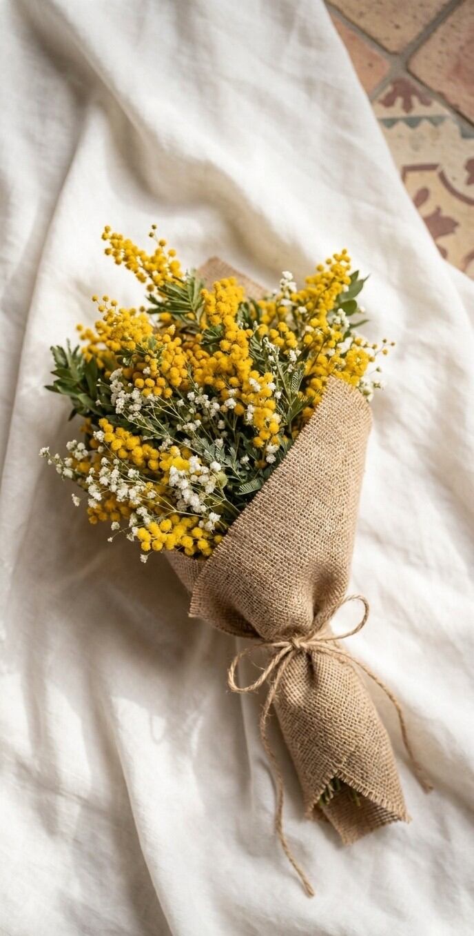 ふんわりと咲くミモザを束ね、ナチュラルで上品な雰囲気のブーケに仕上げました。
